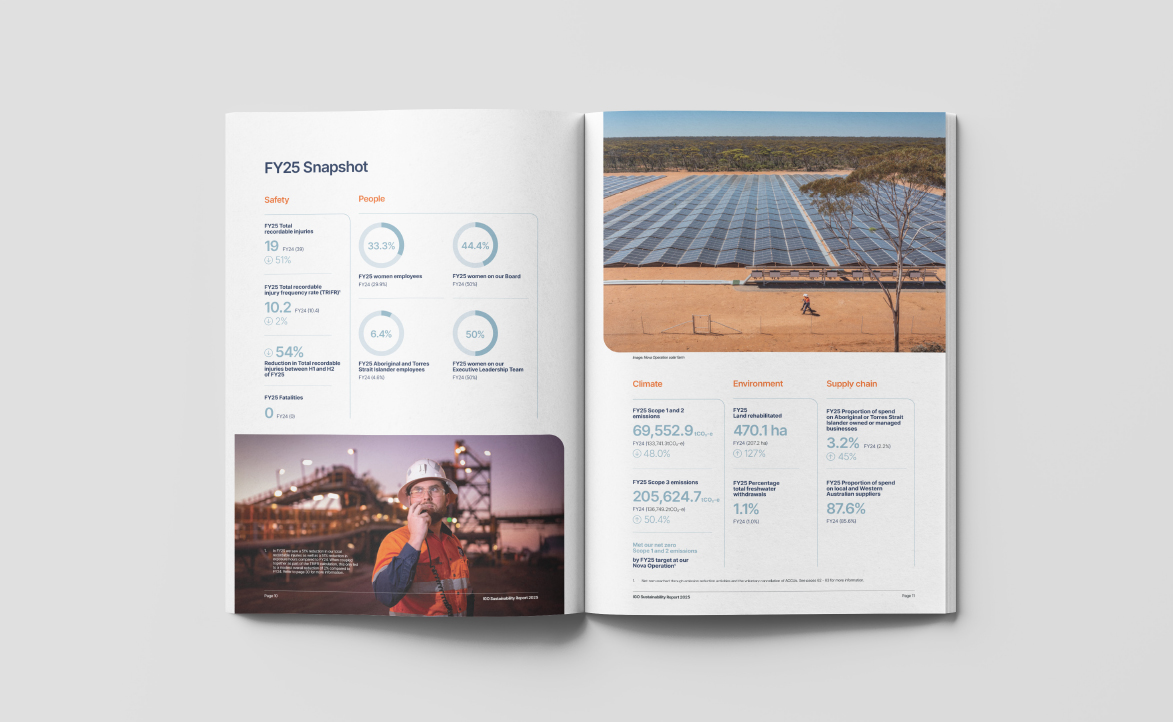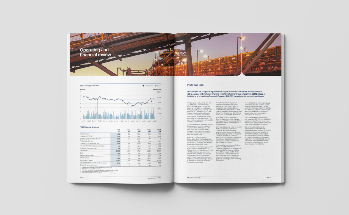 Clarity manages the design and production of IGO’s Annual and Sustainability Reports, ensuring the narrative, performance and priorities are clearly reflected and meet the expectations of a listed company under ongoing scrutiny.