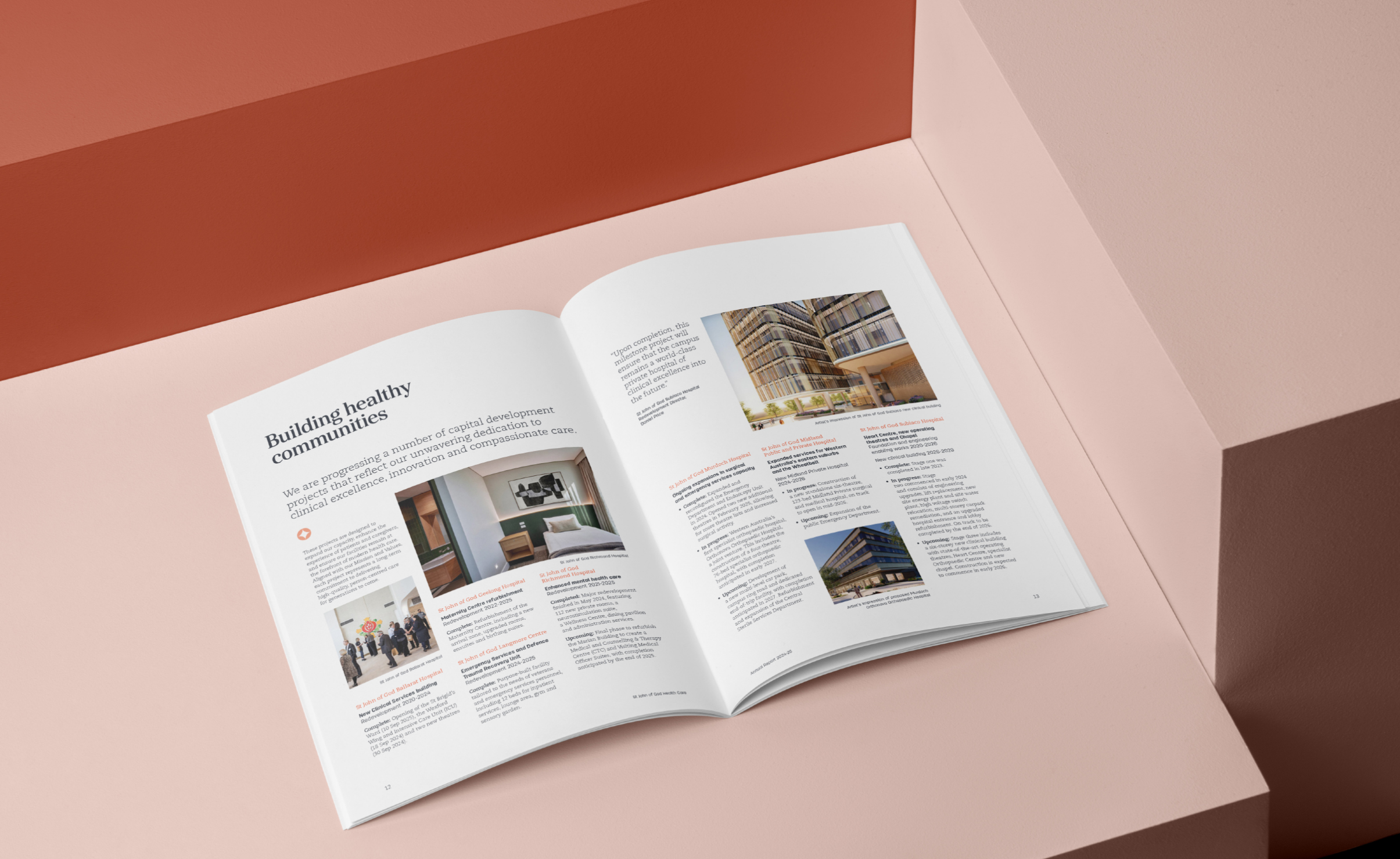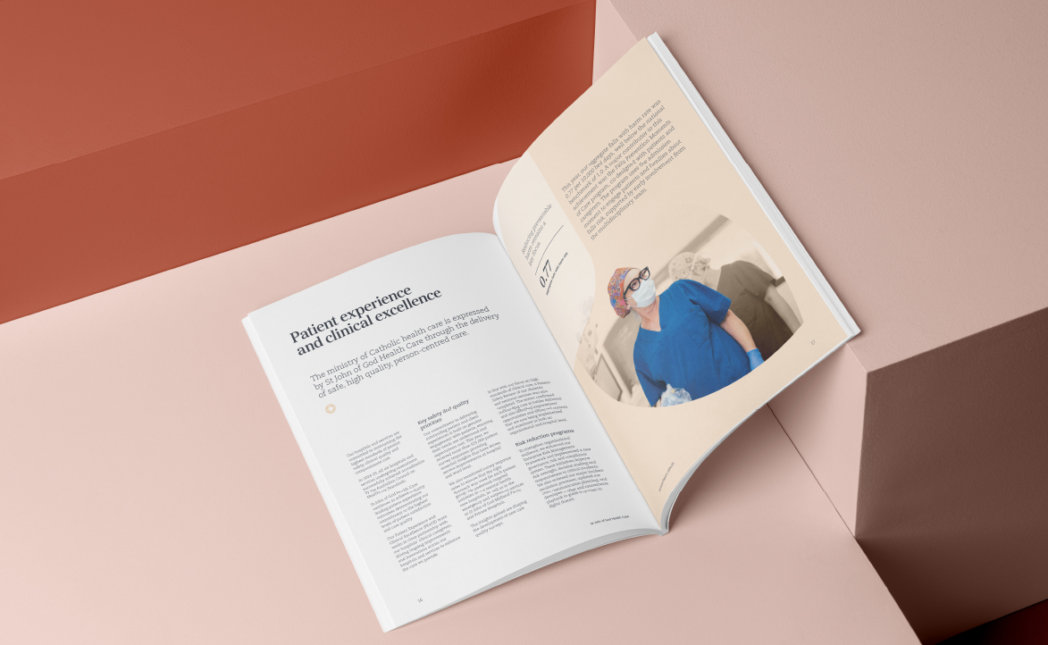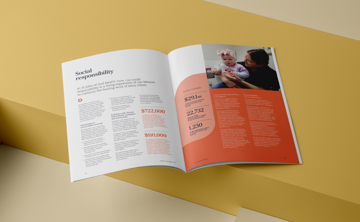 Beyond corporate reporting, Clarity also supports a range of design projects, including the organisation’s internal newsletter, Pomegranate, and special publications such as Go and Do Likewise, a commemorative book celebrating the 25th anniversary of the incorporation of the St John of God Health Care Group.