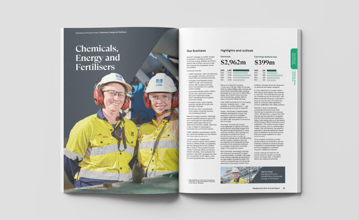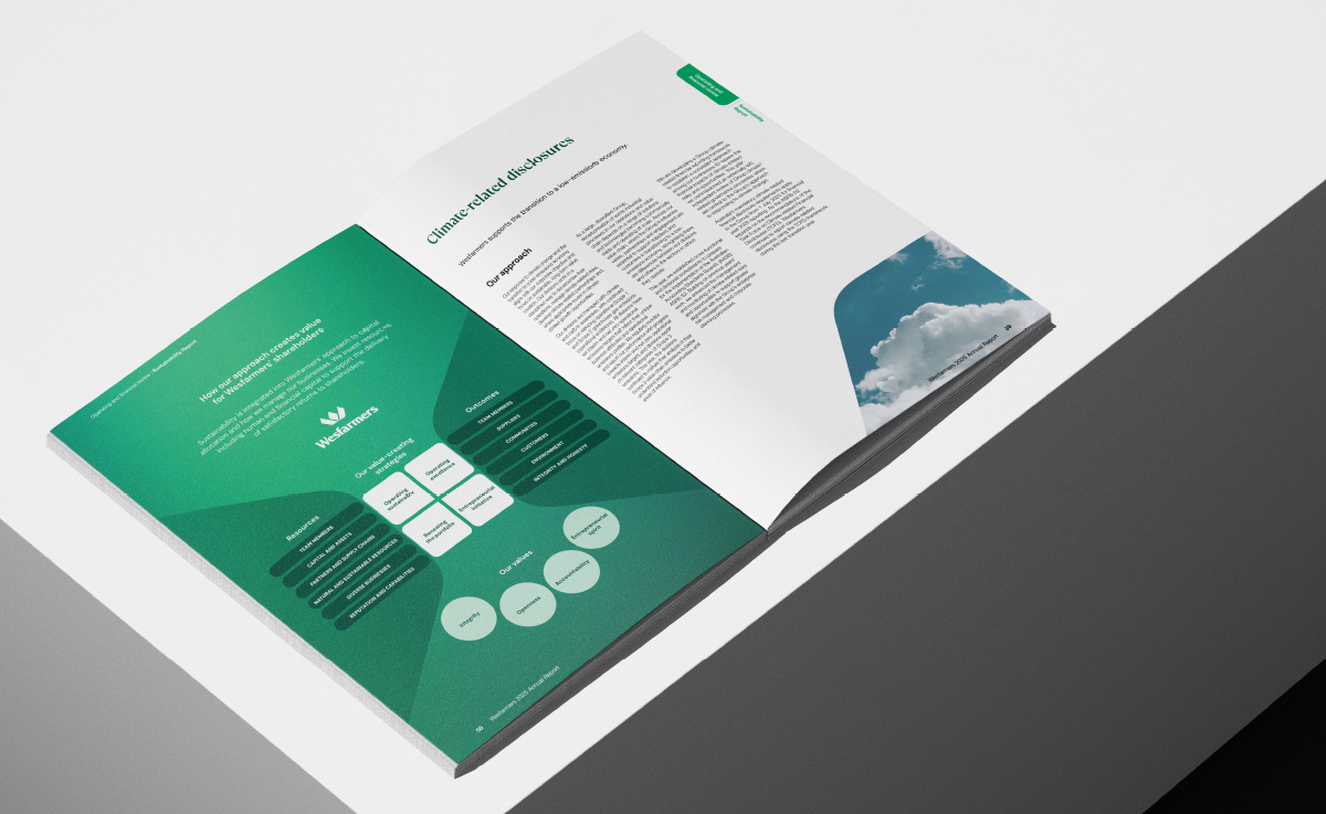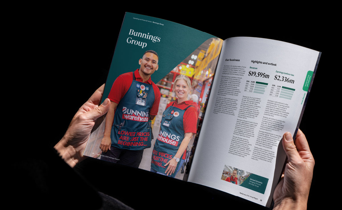 Clarity has been responsible for the management of Wesfarmers visual brand, particularly through the ongoing development of its reporting and governance suite of documents.